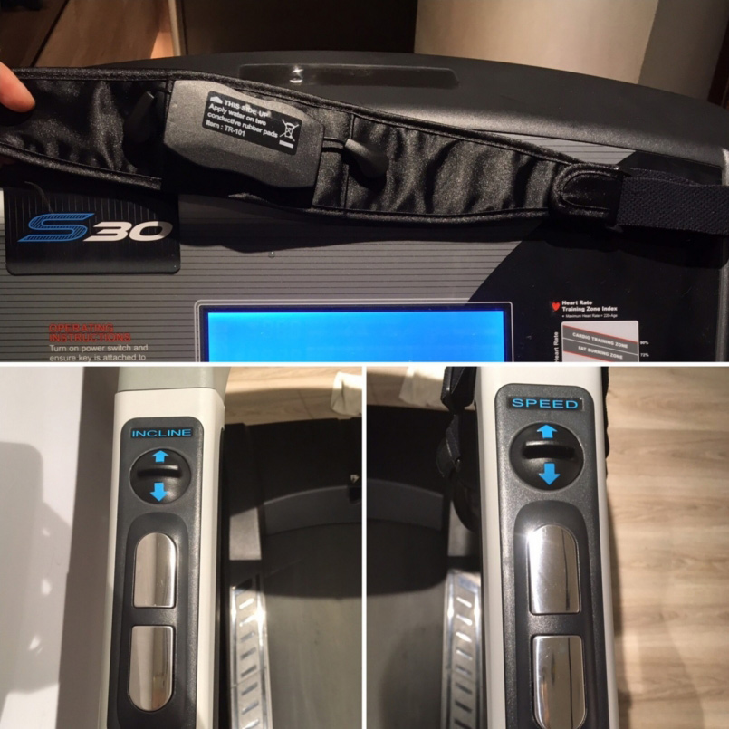 接著當然是實際的跑步測試啦!!大致來說跑起來非常順暢!跑步帶很寬,每一步的震動會被機器給吸收,跑起來的音量也不大!可以一邊看電視不用再開再大聲!左邊是坡度的調整,右邊是速度的調整…這個設計真的『非常方便』!心率也有加贈心率帶,不用一直把雙手放在機器上無法擺手導致跑得不順!這些貼心設計真的是大大改變跑步機的不便!