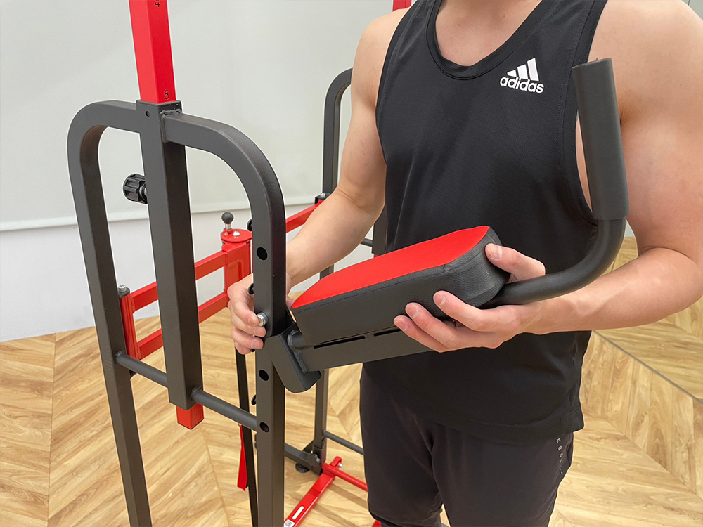 幾次使用下來,無論是引體向上、伏地挺身、提膝收腹,握把及襯墊都有極佳的舒適度,而引體向上桿的寬距適中,握把長度也足以對握距做點微調,來符合每個人的訓練需求差異。